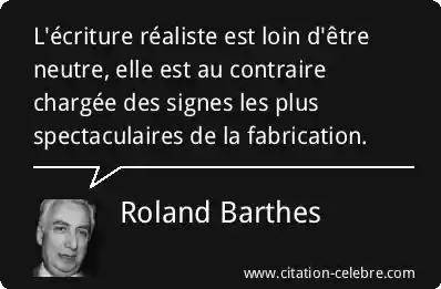 Citation Roland Barthes ecriture : L'écriture réaliste est loin d'être neutre, elle est au contraire...