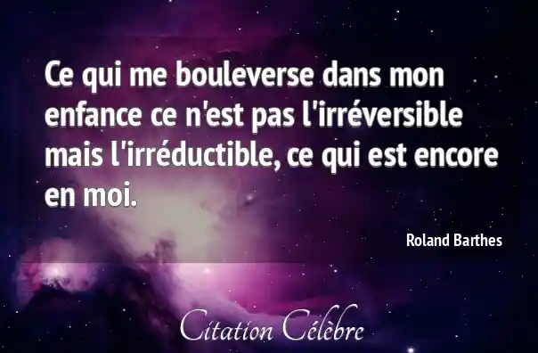 Ce qui me bouleverse dans mon enfance ce n'est pas l'irréversible mais l'irréductible, ce qui est encore en moi.