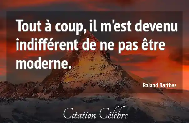 Tout à coup, il m'est devenu indifférent de ne pas être moderne.