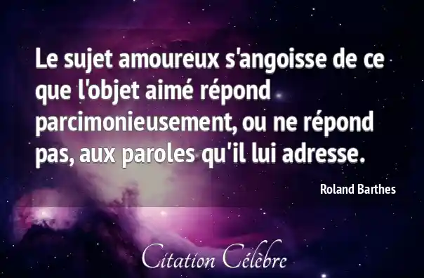Le sujet amoureux s'angoisse de ce que l'objet aimé répond parcimonieusement, ou ne répond pas, aux paroles qu'il lui adresse.