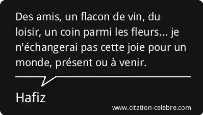 Des amis, un flacon de vin, du loisir, un coin parmi les fleurs... je n'échangerai pas cette joie pour un monde, présent ou à venir.