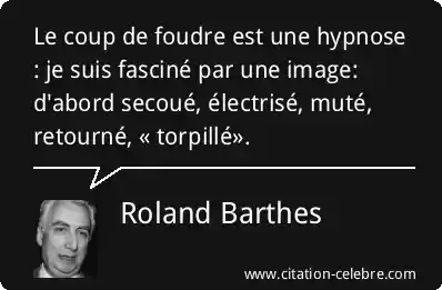 Citation Roland Barthes suis : Le coup de foudre est une hypnose : je suis...