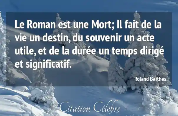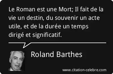 Le Roman est une Mort; Il fait de la vie un destin, du souvenir un acte utile, et de la durée un temps dirigé et significatif.