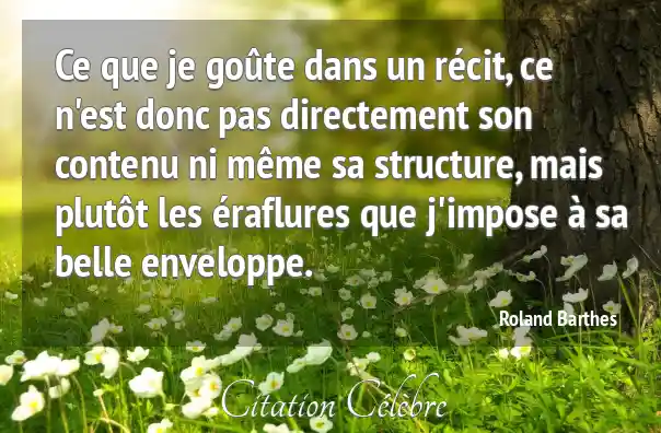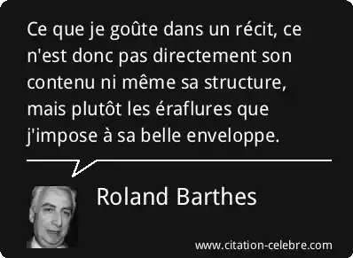 Ce que je goûte dans un récit, ce n'est donc pas directement son contenu ni même sa structure, mais plutôt les éraflures que j'impose à sa belle enveloppe.