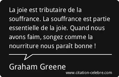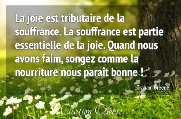La joie est tributaire de la souffrance. La souffrance est partie essentielle de la joie. Quand nous avons faim, songez comme la nourriture nous paraît bonne !