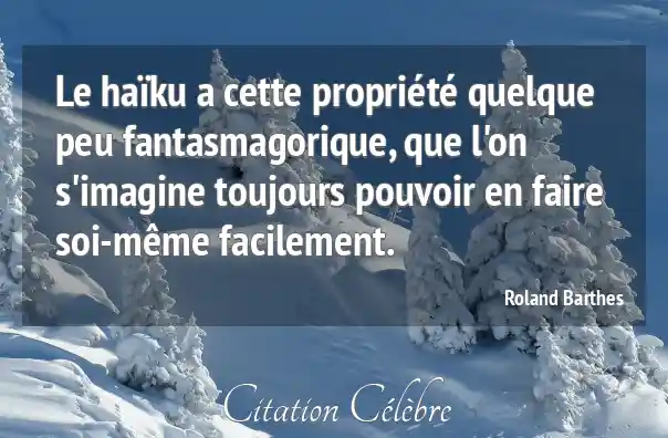 Le haïku a cette propriété quelque peu fantasmagorique, que l'on s'imagine toujours pouvoir en faire soi-même facilement.