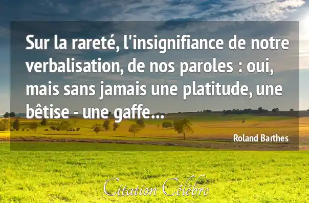 Sur la rareté, l'insignifiance de notre verbalisation, de nos paroles : oui, mais sans jamais une platitude, une bêtise - une gaffe...