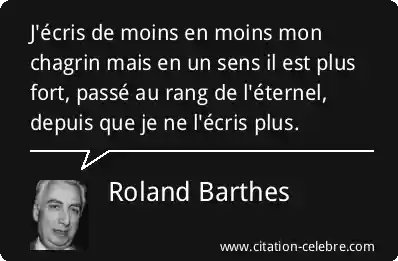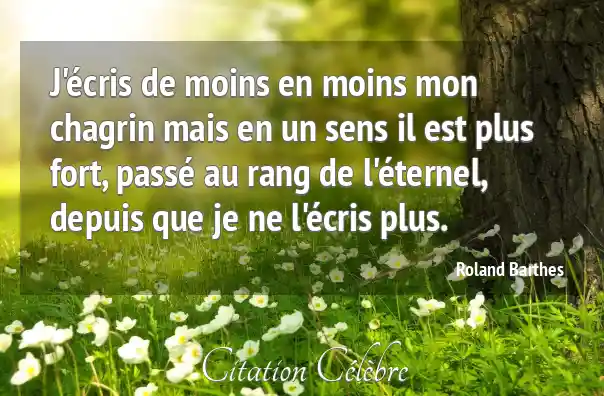 J'écris de moins en moins mon chagrin mais en un sens il est plus fort, passé au rang de l'éternel, depuis que je ne l'écris plus.