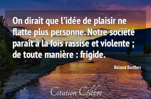 On dirait que l'idée de plaisir ne flatte plus personne. Notre société paraît à la fois rassise et violente ; de toute manière : frigide.