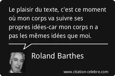 Le plaisir du texte, c'est ce moment où mon corps va suivre ses propres idées-car mon corps n a pas les mêmes idées que moi.