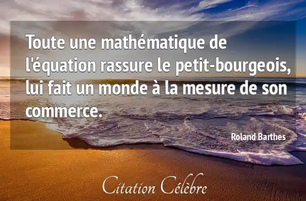 Toute une mathématique de l'équation rassure le petit-bourgeois, lui fait un monde à la mesure de son commerce.