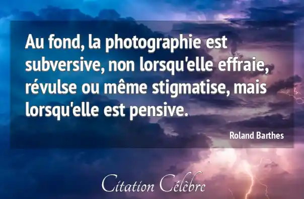 Au fond, la photographie est subversive, non lorsqu'elle effraie, révulse ou même stigmatise, mais lorsqu'elle est pensive.