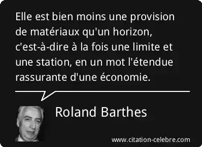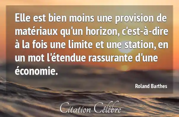 Elle est bien moins une provision de matériaux qu'un horizon, c'est-à-dire à la fois une limite et une station, en un mot l'étendue rassurante d'une économie.