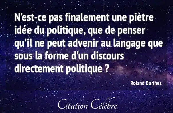 N'est-ce pas finalement une piètre idée du politique, que de penser qu'il ne peut advenir au langage que sous la forme d'un discours directement politique ?