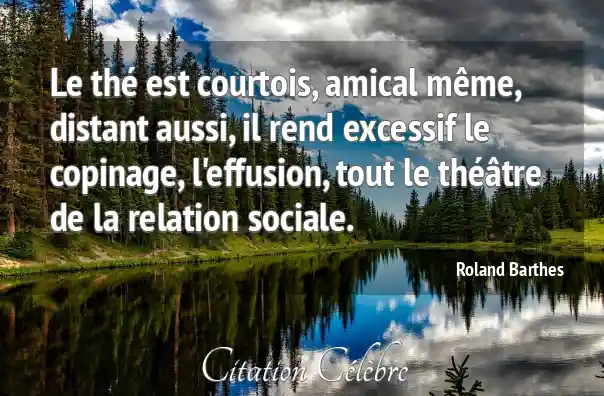 Le thé est courtois, amical même, distant aussi, il rend excessif le copinage, l'effusion, tout le théâtre de la relation sociale.