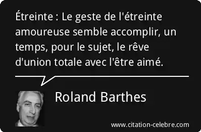 Citation Roland Barthes temps : Étreinte : Le geste de l'étreinte amoureuse semble accomplir, un...