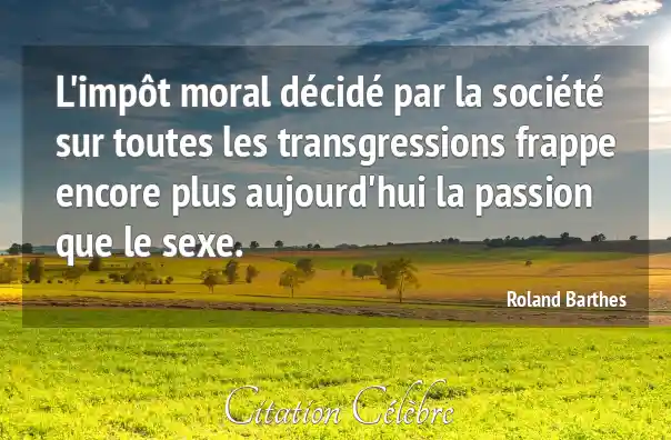L'impôt moral décidé par la société sur toutes les transgressions frappe encore plus aujourd'hui la passion que le sexe.