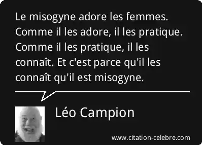 Le misogyne adore les femmes. Comme il les adore, il les pratique. Comme il les pratique, il les connaît. Et c'est parce qu'il les connaît qu'il est misogyne.