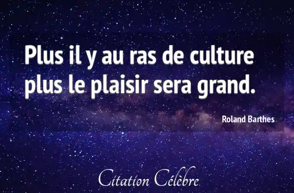Plus il y au ras de culture plus le plaisir sera grand.