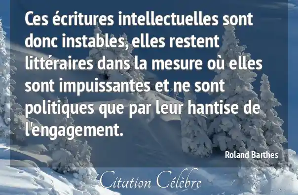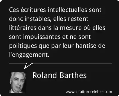 Ces écritures intellectuelles sont donc instables, elles restent littéraires dans la mesure où elles sont impuissantes et ne sont politiques que par leur hantise de l'engagement.