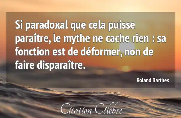 Citation Roland Barthes rien : Si paradoxal que cela puisse paraître, le mythe ne cache...