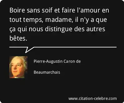 Boire sans soif et faire l'amour en tout temps, madame, il n'y a que ça qui nous distingue des autres bêtes.