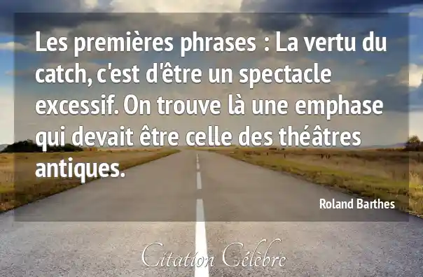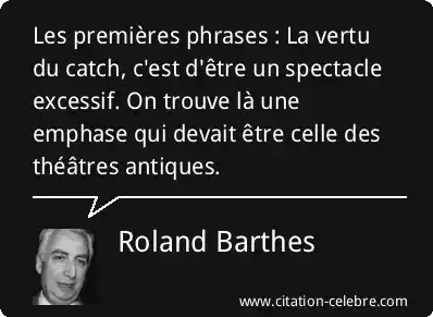 Les premières phrases : La vertu du catch, c'est d'être un spectacle excessif. On trouve là une emphase qui devait être celle des théâtres antiques.