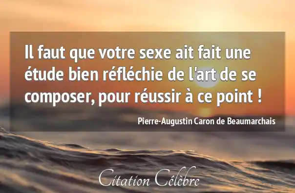 Il faut que votre sexe ait fait une étude bien réfléchie de l'art de se composer, pour réussir à ce point !