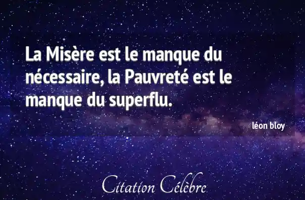 La Misère est le manque du nécessaire, la Pauvreté est le manque du superflu.