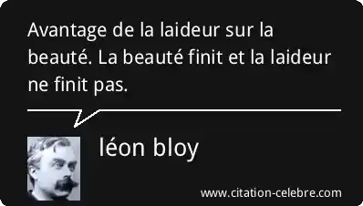 Citation léon bloy beaute : Avantage de la laideur sur la beauté. La beauté finit...