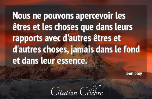 Nous ne pouvons apercevoir les êtres et les choses que dans leurs rapports avec d'autres êtres et d'autres choses, jamais dans le fond et dans leur essence.