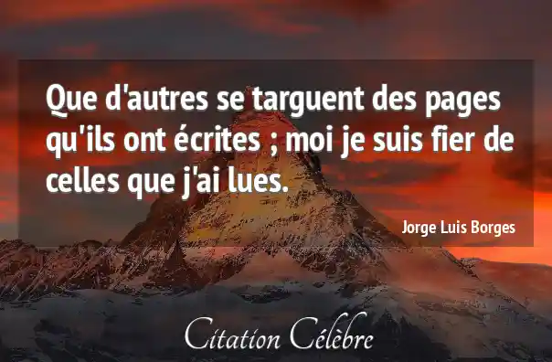 Que d'autres se targuent des pages qu'ils ont écrites ; moi je suis fier de celles que j'ai lues.