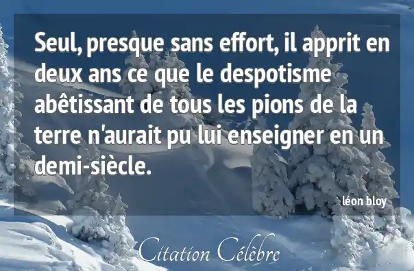 Seul, presque sans effort, il apprit en deux ans ce que le despotisme abêtissant de tous les pions de la terre n'aurait pu lui enseigner en un demi-siècle.