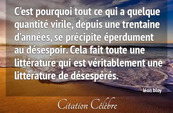 C'est pourquoi tout ce qui a quelque quantité virile, depuis une trentaine d'années, se précipite éperdument au désespoir. Cela fait toute une littérature qui est véritablement une littérature de désespérés.