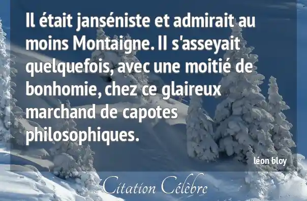 Il était janséniste et admirait au moins Montaigne. II s'asseyait quelquefois, avec une moitié de bonhomie, chez ce glaireux marchand de capotes philosophiques.