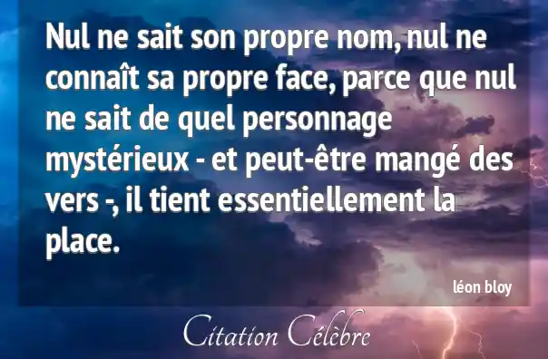 Nul ne sait son propre nom, nul ne connaît sa propre face, parce que nul ne sait de quel personnage mystérieux - et peut-être mangé des vers -, il tient essentiellement la place.