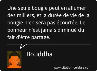 Une seule bougie peut en allumer des milliers, et la durée de vie de la bougie n'en sera pas écourtée. Le bonheur n'est jamais diminué du fait d'être partagé.