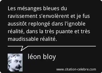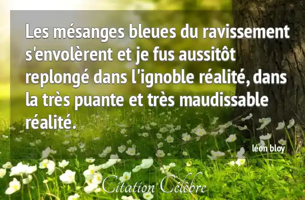 Les mésanges bleues du ravissement s'envolèrent et je fus aussitôt replongé dans l'ignoble réalité, dans la très puante et très maudissable réalité.