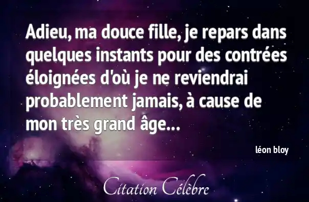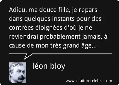Adieu, ma douce fille, je repars dans quelques instants pour des contrées éloignées d'où je ne reviendrai probablement jamais, à cause de mon très grand âge...
