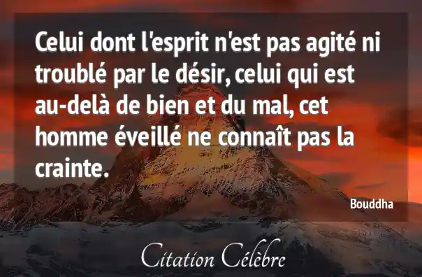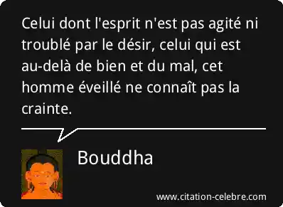 Celui dont l'esprit n'est pas agité ni troublé par le désir, celui qui est au-delà de bien et du mal, cet homme éveillé ne connaît pas la crainte.