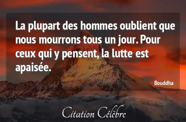 La plupart des hommes oublient que nous mourrons tous un jour. Pour ceux qui y pensent, la lutte est apaisée.
