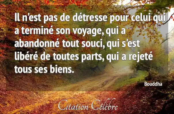 Il n'est pas de détresse pour celui qui a terminé son voyage, qui a abandonné tout souci, qui s'est libéré de toutes parts, qui a rejeté tous ses biens.