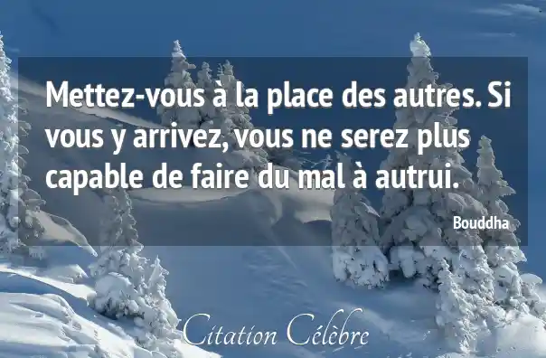 Mettez-vous à la place des autres. Si vous y arrivez, vous ne serez plus capable de faire du mal à autrui.
