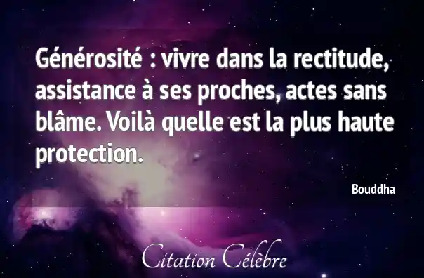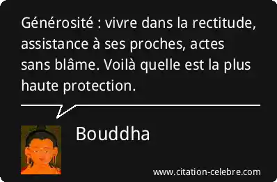 Générosité : vivre dans la rectitude, assistance à ses proches, actes sans blâme. Voilà quelle est la plus haute protection.