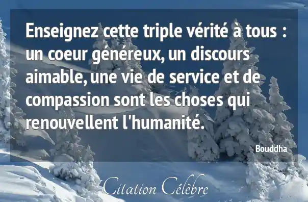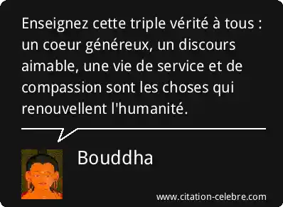 Enseignez cette triple vérité à tous : un coeur généreux, un discours aimable, une vie de service et de compassion sont les choses qui renouvellent l'humanité.