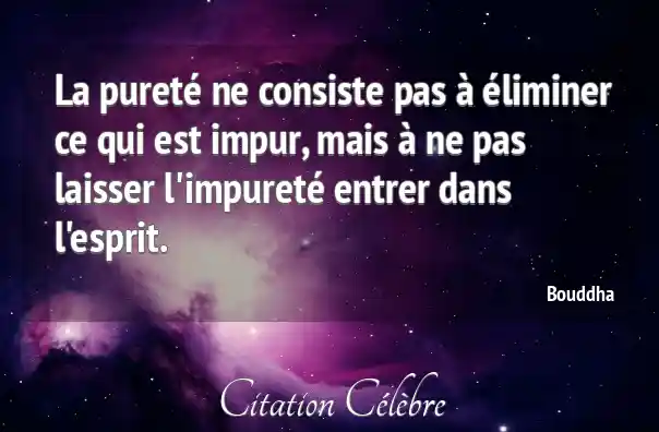La pureté ne consiste pas à éliminer ce qui est impur, mais à ne pas laisser l'impureté entrer dans l'esprit.