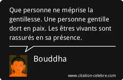 Que personne ne méprise la gentillesse. Une personne gentille dort en paix. Les êtres vivants sont rassurés en sa présence.