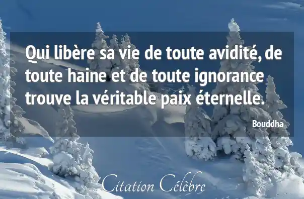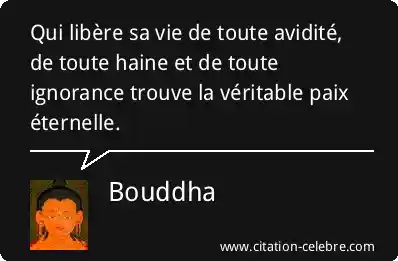 Qui libère sa vie de toute avidité, de toute haine et de toute ignorance trouve la véritable paix éternelle.