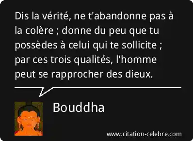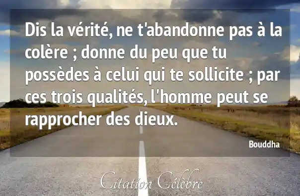 Dis la vérité, ne t'abandonne pas à la colère ; donne du peu que tu possèdes à celui qui te sollicite ; par ces trois qualités, l'homme peut se rapprocher des dieux.