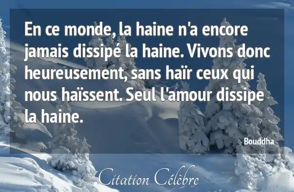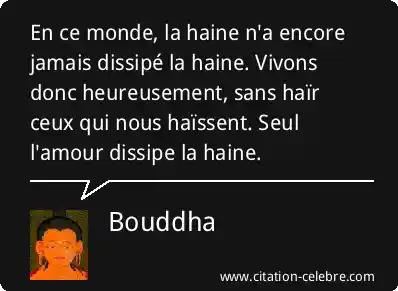 En ce monde, la haine n'a encore jamais dissipé la haine. Vivons donc heureusement, sans haïr ceux qui nous haïssent. Seul l'amour dissipe la haine.